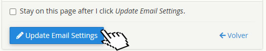 Una vez que hayas ingresado la nueva contraseña, haz clic en el botón «Update Email Settings» o «Actualizar configuración del correo» para confirmar y guardar la nueva configuración y cambiar contraseña.