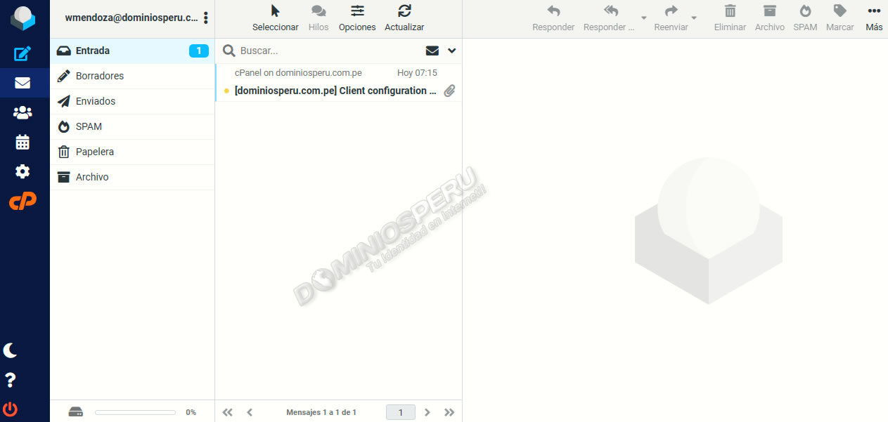 Automáticamente, cPanel nos redirigirá a nuestra bandeja de correo.