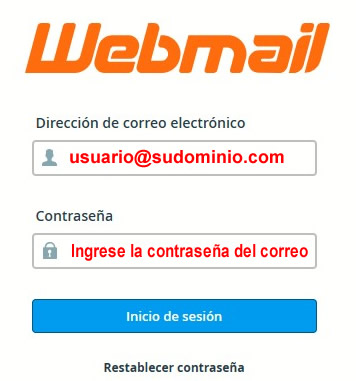Dirección de correo electrónico: Esbriba su correo completo ejm: usuario@sudominio.com